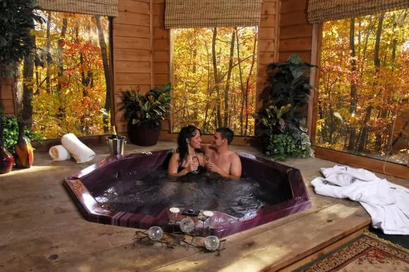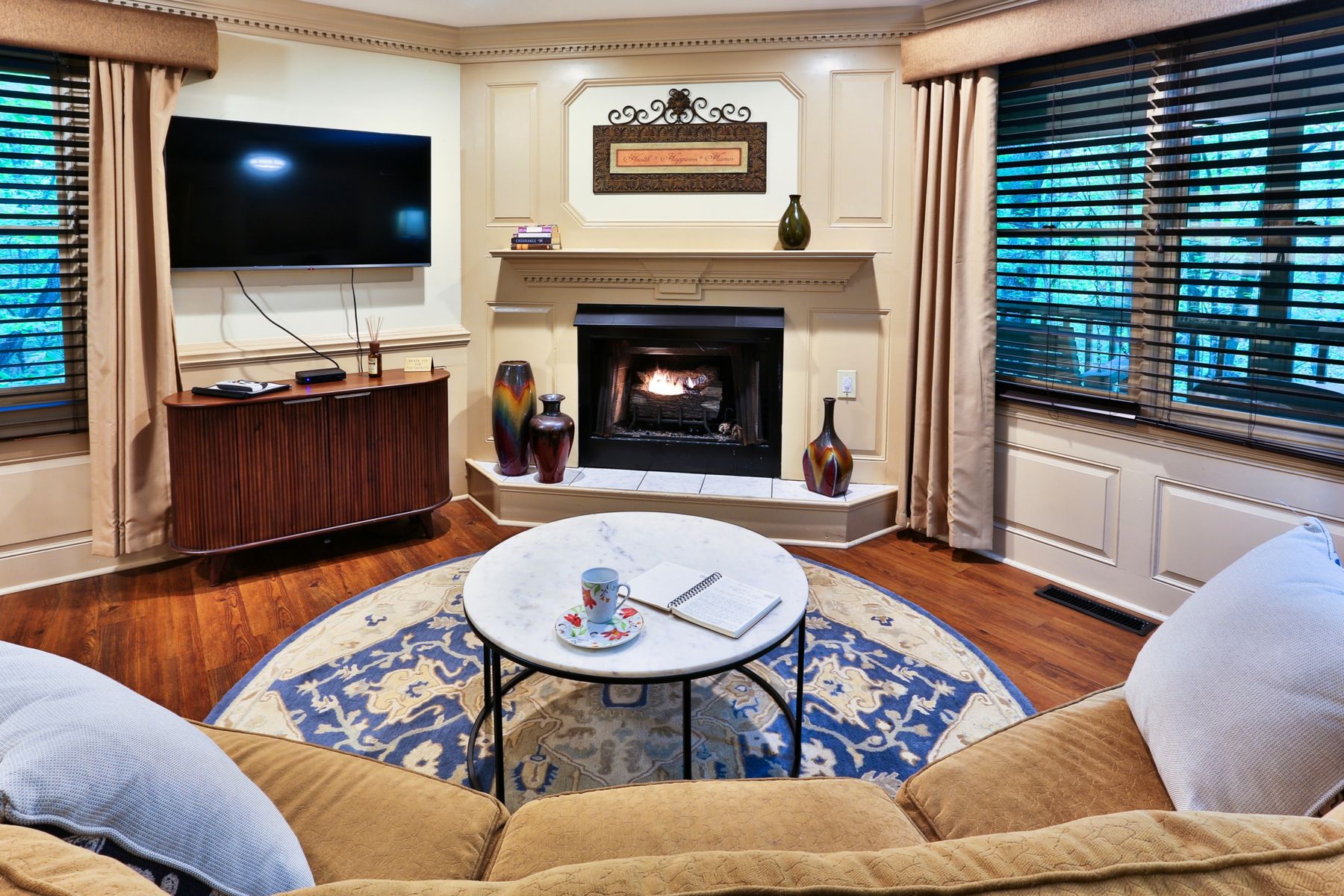 A romantic, private retreat featuring a canopy bed, cozy fireplace, in-room hot tub, and peaceful woodland views—perfect for honeymoons and intimate getaways. NO PETS