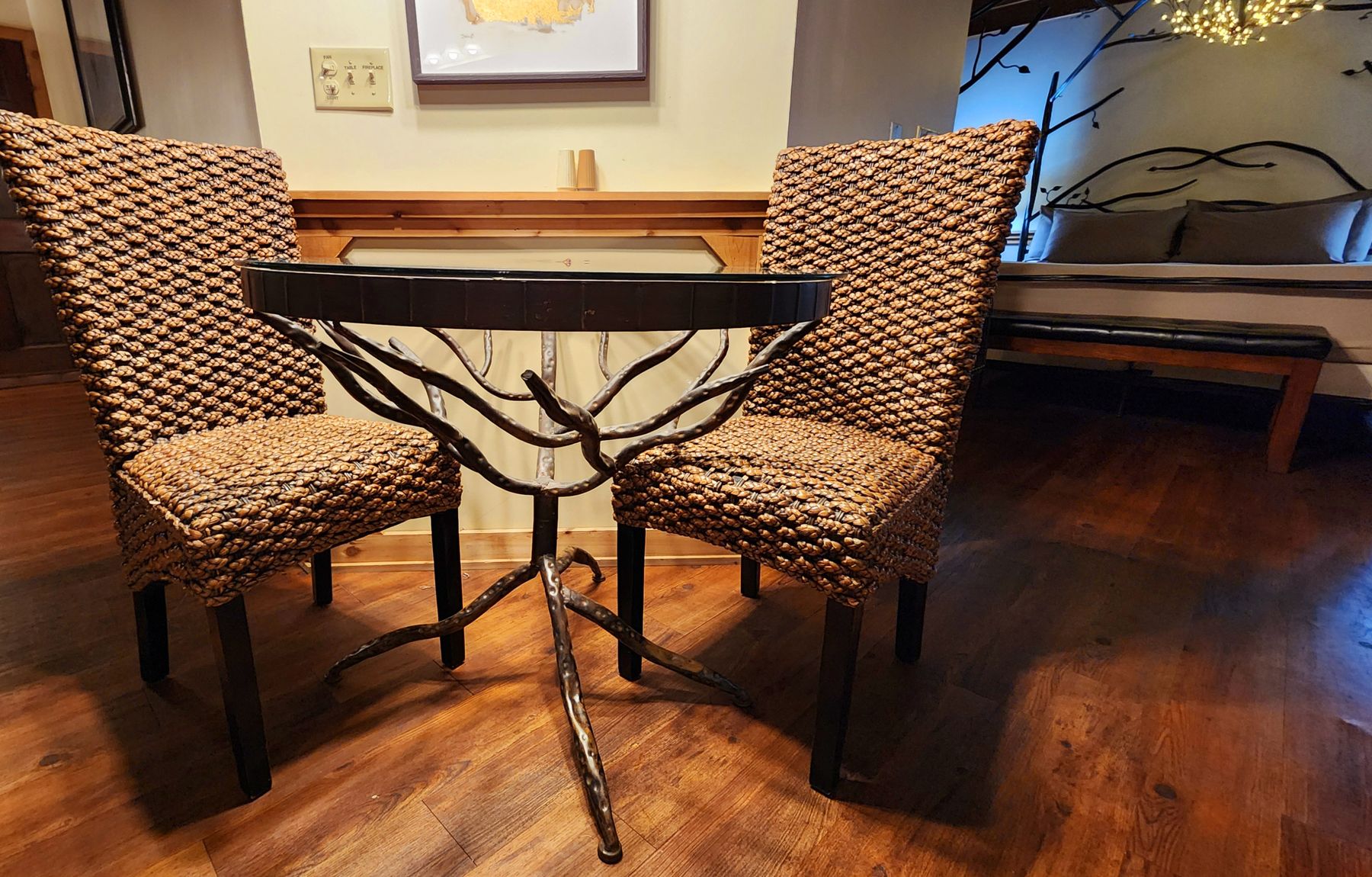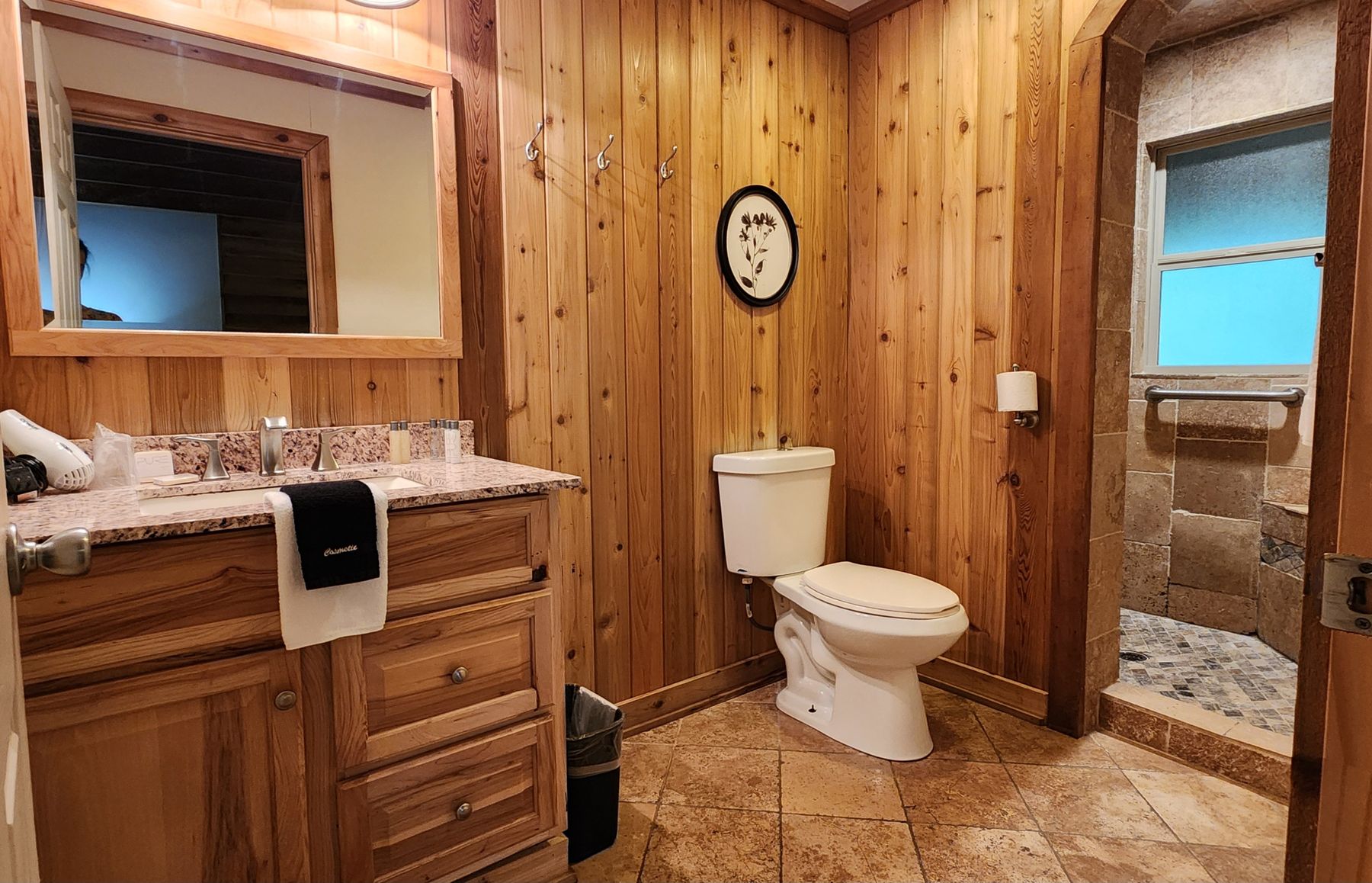 1,400 sq. ft. pet-friendly cabin with 2 king bedrooms, full kitchen, fireplace, private hot tub room, and 2.5 baths. Sleeps families or groups comfortably. Small dogs permitted. Limit 2. Advance notice and pet fees apply.