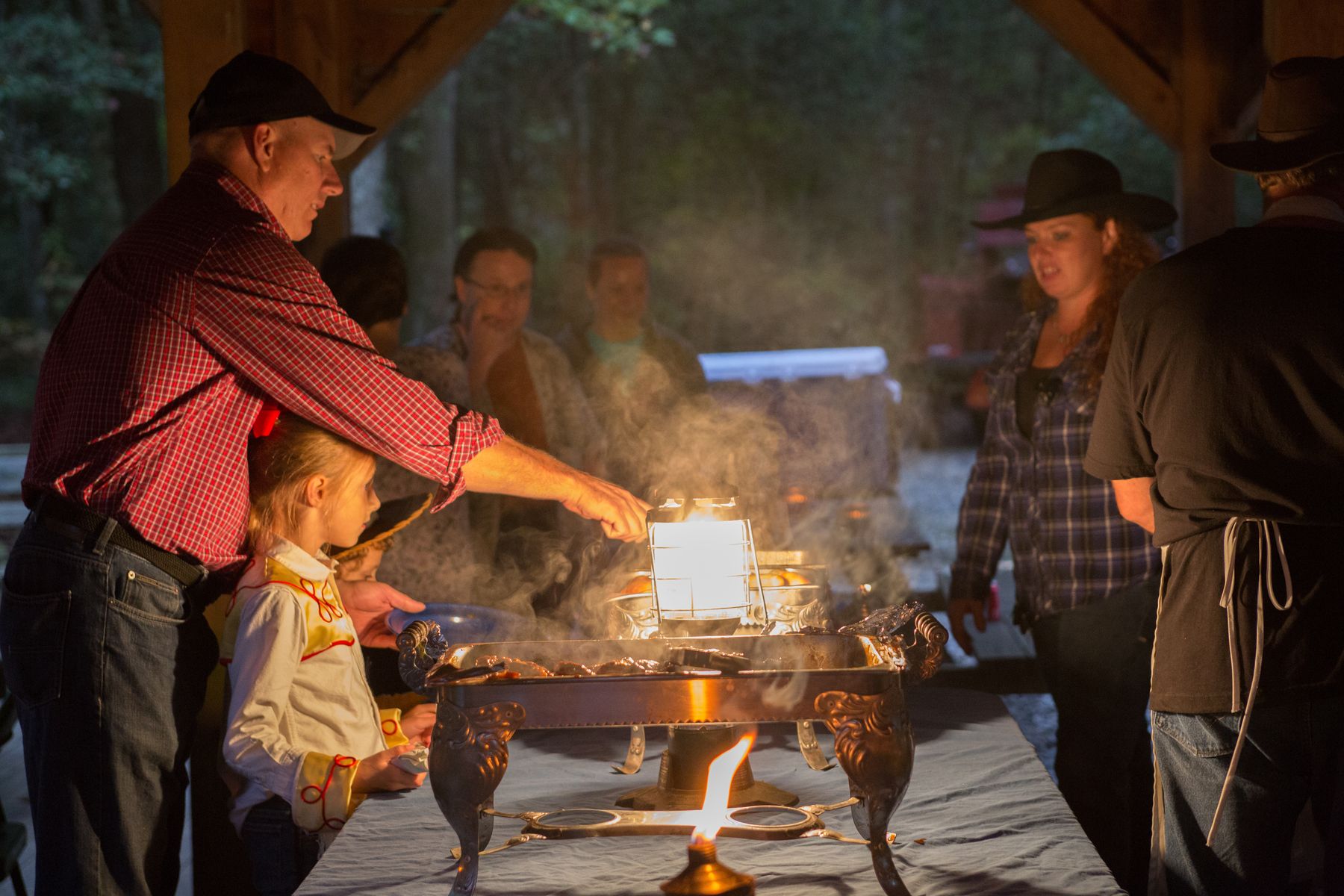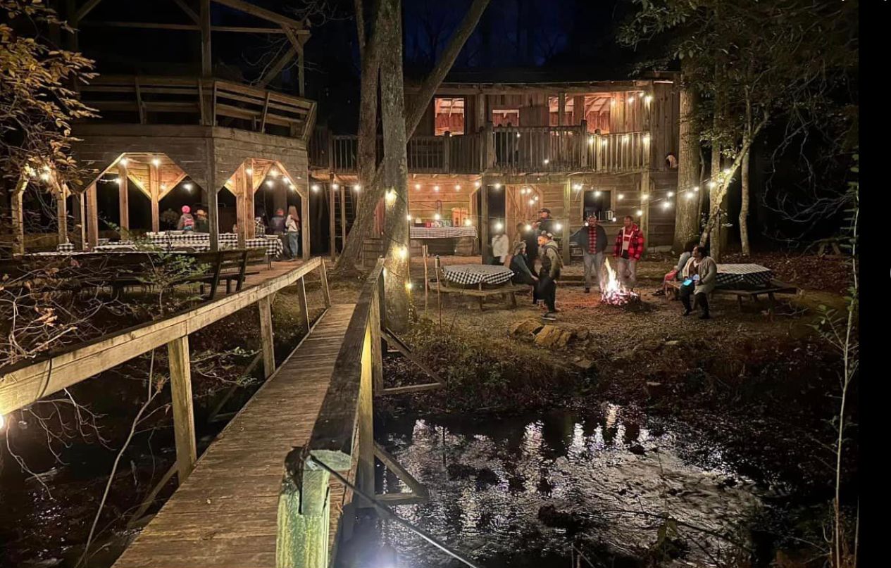 As shown below! Experience an unforgettable wagon ride via tractor and/or double horse-drawn wagons to a remote location nestled at a rustic barn next to a picturesque large creek. Cross the charming bridge to Horseshoe Island while enjoying live music. Indulge in a mouthwatering dinner featuring sizzling steak and chicken on the grill, flavorful baked beans, refreshing coleslaw, savory potato salad, freshly baked bread, delectable cobbler, and tea and water.This excursion departs from Forrest Hills Resort and starts with a 15 minute ride to a remote, lantern lit river house. BYOB Group bookings only—reserve in advance! 20 Guests $1380++ Additional adults $69++ Children $49++